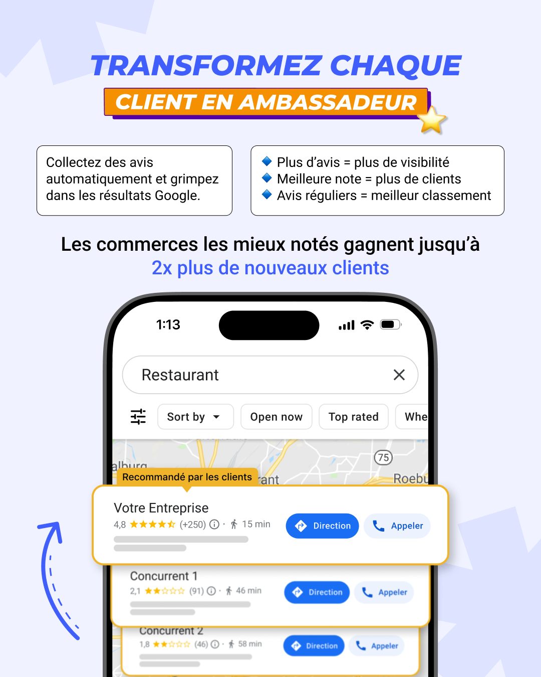 ✔ Gagnez en visibilité locale – Plus d’avis, plus de clients, plus de confiance
